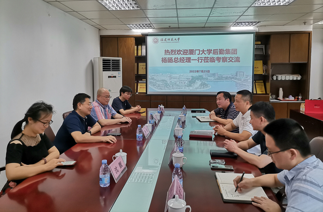 7月25日下午,厦门大学后勤集团总经理杨旸一行4人到玩球(中国后勤调研交流。后勤管理处、后勤服务集团党政班子成员及综合科相关人员参加了座谈会。会上,双方就后勤运营模式及相关激励机制,后勤信息化、智能化建设,餐饮服务提升,物业管理等方面进行了广泛交流,分享了各自的经验,并希望今后能进一步加强合作和交流,共同提升后勤服务品质。期间,杨旸一行还参观了旗山校区花香园、翠竹园餐厅。(后勤管理处、后勤服务集团)