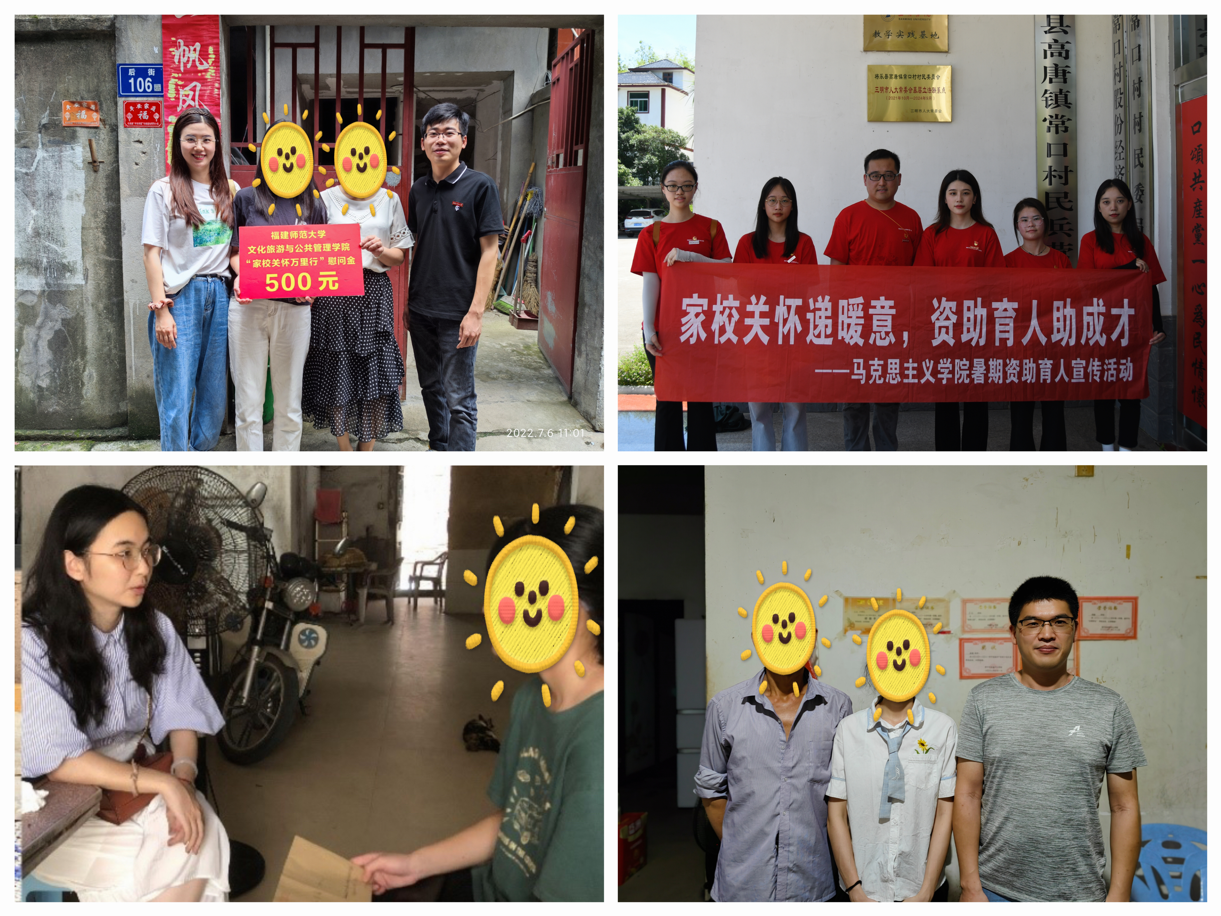 暑假期间,玩球(中国结合社会实践,发动返乡资助志愿者、组织师生到基层一线和广大农村开展“资助政策乡村行”“家校关怀万里行”等资助育人活动,大力宣传国家和学校资助政策,走访慰问家庭经济困难学生,为学生送去国家和学校的温暖和关怀。