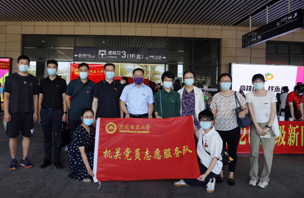 911-13日,为认真落实学校疫情防控要求,全力确保迎新工作安全、平稳、有序进行,机关党委向机关各支部发出号召,36名机关党员干部组成机关党员志愿服务队,分别前往火车南站、火车北站、汽车北站迎新点参加迎新志愿活动。