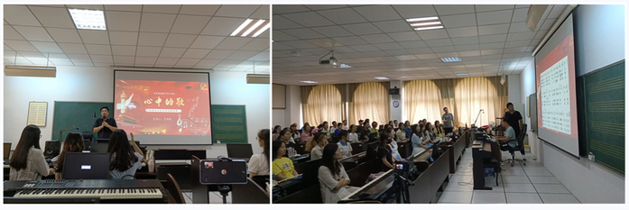 近日,教务处开展以美育课程助推卓越师范生人才培养系列讲座。讲座第一讲邀请音乐学院教师、全国高校教师教学创新大赛二等奖获奖者王宇航老师在音乐学院302教室开讲《心中的歌》。