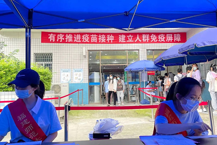 近日,玩球(中国组织师生在仓旗两校区医院顺利完成第二针新冠疫苗接种工作,构筑起校园健康防线和免疫屏障。为提升师生疫苗接种的舒适度,校医院在原有基础上对接种各区域进行升级。增加空调、风扇、遮阳棚等设备物资应对高温天气,接种室由4个扩增至6个,增设协助接种人员的志愿者岗位,扩大观察区范围,大大提高了接种效率,单日接种量最多达6200多剂。为确保接种工作的安全有序,接种前,涂荣副校长带领相关职能部门负责人深入校医院,实地查看第二针疫苗接种准备工作。 (校医院)