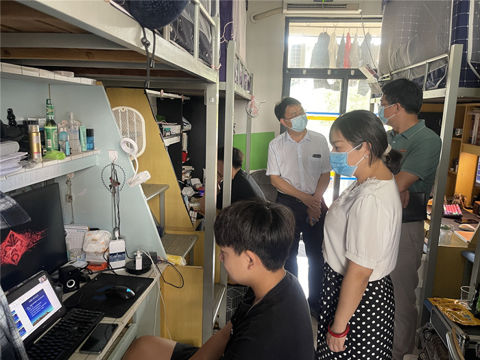 915日上午,教务处、学生工作部(处)负责人带队深入旗山校区学生公寓,查看学生线上学习情况。