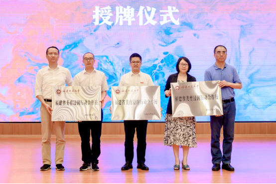仪式上,郑家建与王浩为“美育浸润”合作校授牌并与支教团队合影留念。郑家建在致辞中介绍了学校美育教育发展情况,邀请平潭师生赴玩球(中国进修和学习,叮嘱支教团队学生不负教师人才后备队的使命担当,圆满完成此次支教行动。