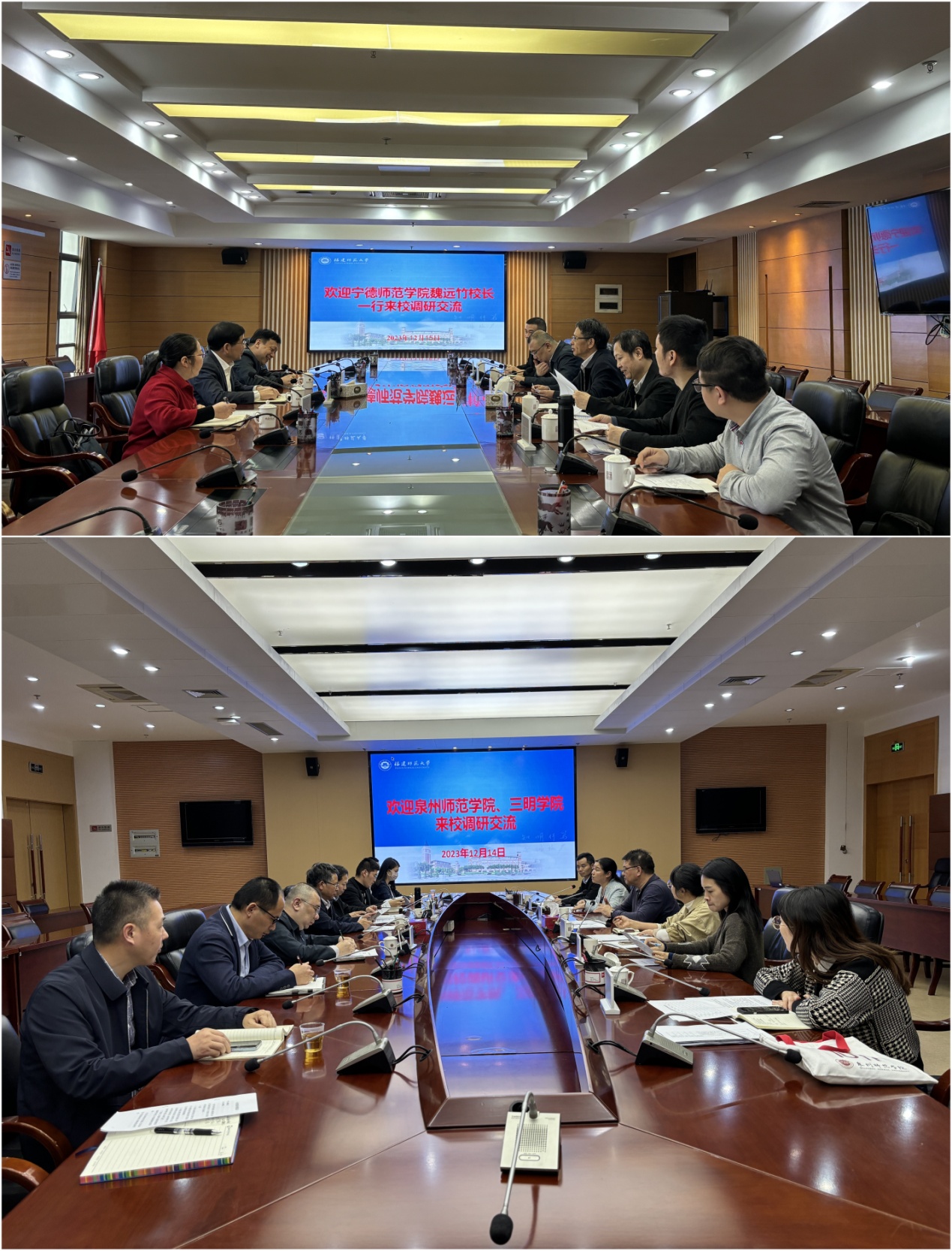 近日,三明学院、泉州师范学院、宁德师范学院、武夷学院、闽江学院等研究生联合培养单位领导、相关部门负责人来校交流研讨。副校长陈庆华、研究生院负责人及有关学院代表参加了座谈。