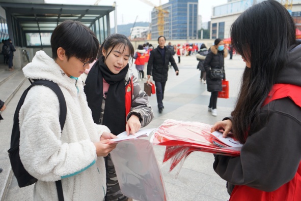 1月25日,玩球(中国学生工作部(处)党支部联合省学生资助管理中心党支部在福州火车站南广场共同开展“国家资助温暖回家路”党日活动暨资助政策宣传志愿者活动。学生工作部(处)党支部书记、部(处)长颜隆忠带领支部党员和文学院青年志愿者到现场为往来旅客介绍国家资助政策,分发新春对联、新年台历以及助学贷款等相关宣传材料,为2024年春运增添一份温馨暖意。