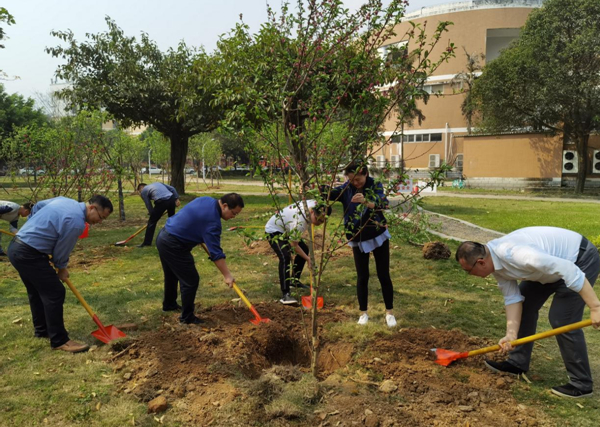 314日,研究生院党支部开展“我为校园添新绿”植树节主题党日活动,组织支部党员在翠竹园餐厅东侧绿地种植桃树。