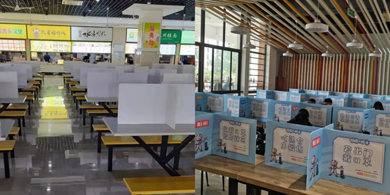错峰用餐,避免接触。校内餐厅供餐采用“堂食+外带”模式,提倡师生错峰错时用餐,在餐厅餐桌增设隔板,要求师生堂食同向间隔就座用餐。鼓励校内人员自带餐盒,餐厅提供打包,减少餐厅人员聚集,不接受任何形式的聚餐。